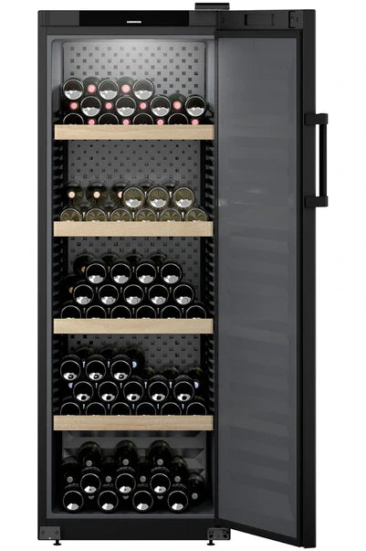 La cave Liebherr WKP196 est une cave de vieillissement dotée d'une porte pleine pour une parfaite maturation lente à l'abri de la lumière extérieure et une finition noire qui lui confèrent un design élégant. Elle a une capacité de 196 bouteilles.